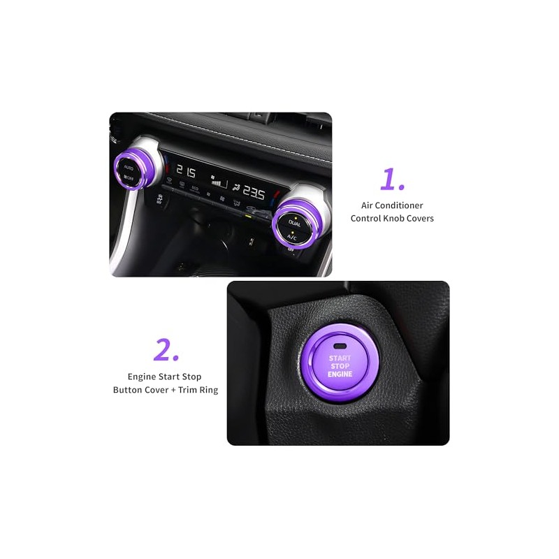 Polodunn Polodunn for Toyota RAV4 Accessories 2025 2024 2023 2022 2021 2020 2019 -Air Conditioning Knob Covers, Push Start Button Cover Trim Rings 4pcs (Purple)