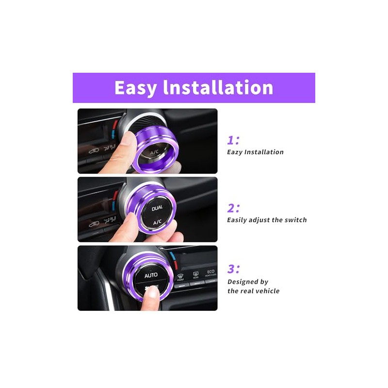 Installation Steps: 1: Clean the surface and keep dry before installation 2: Do not need any other tool, just press the button cover trim into the air conditioning button/Fan button 3: Peel the adhesive tape off knob intor and put onto the buttons