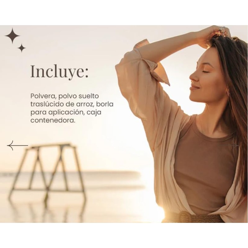 Polvo traslúcido suelto de arroz, con textura ligera, suave al tacto, así como un exquisito y característico aroma. La combinación de ingredientes naturales y minerales, con cualidades astringentes y antisépticas, brinda, además, una pantalla de protección solar, con factor de protección solar 30 que ayuda a prevenir quemaduras solares y daños en la piel. Para uso en todo tipo de pieles. Brinda un efecto mate. Elimina el exceso de brillo y controla la grasa. No tapa los poros. Prolonga la duración del maquillaje. Unifica el tono de la piel con una textura sedosa. Mejora la apariencia de poros abiertos y líneas de expresión. Nuestra gama de tonos se diseña pensando en la diversidad que existe en las tonalidades de piel y las tendencias, por lo que contamos con 11 tonos mate divididos en tonos claros, medios y oscuros, así como subtono amarillo, rosa y neutro para lograr el mejor efecto en cada tono de piel. También contamos 2 tonos perlescentes que le darán destellos y luminosidad a la piel. Incluye una polvera con 30g de producto y una práctica borla para aplicarlo.
