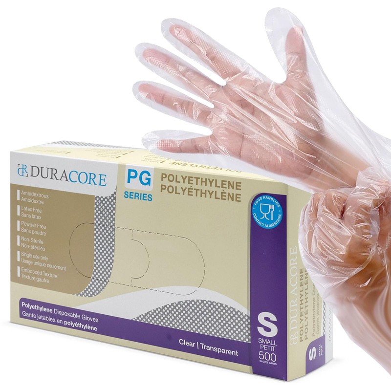 Poly Deli Gloves, Small, Disposable Polyethylene Gloves, Food Handling, 500 Pack, Embossed by Duracore