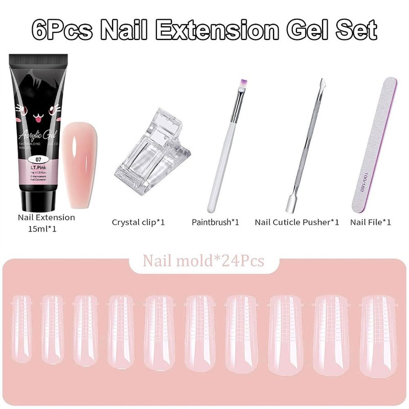 • 【Nail Art Kit】Unser Nail Art Kit mit klarem Verlängerungsgel enthält 1*15ml klares Nagelverlängerungsgel, 24 Nagelformen, 1* Nagelbürste, 1* Nagelfeile, 1* Nagelhautschieber und 1* Kristallclip. Diese Nagelverlängerung Gel Set kann leicht DIY Ihre Nägel, so dass Sie Salon Qualität Gel-Nägel zu Hause bekommen können.
