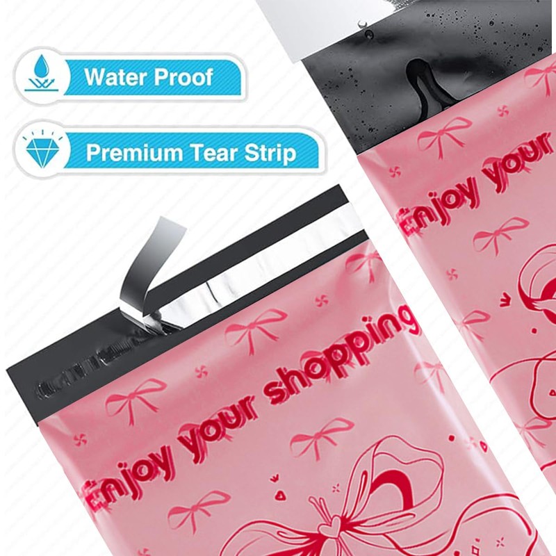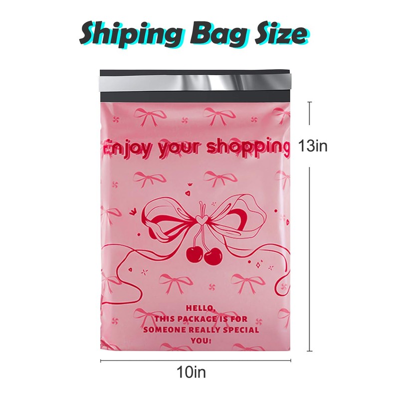 - Poly mailers 10x13 " shipping bag, 100 per pack, safe and reliable to protect your privacy. The unique and cute bow print is the best choice for packaging gifts, making customers feel happy when they receive the goods.