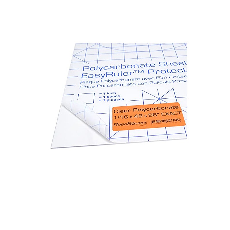 Polycarbonate Plastic Sheet 48" X 96" X 0.0625" (1/16", 4x8 ft) Exact, EasyRuler Film, Shatter Resistant, Easier to Cut, Bend, Mold than Plexiglass. For VEX Robot, Hobby, Home, DIY, Industrial, Crafts