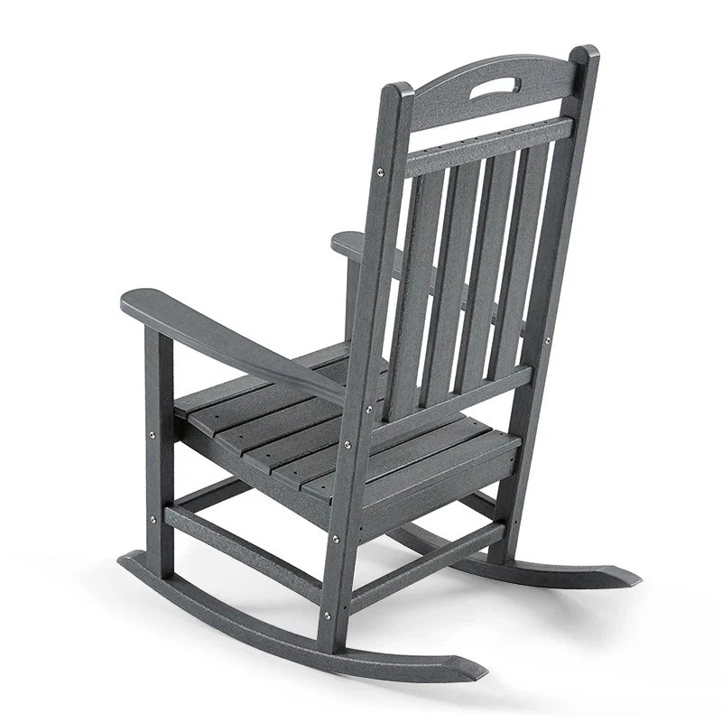Enjoy ultimate relaxation with our Polydun Outdoor Plastic Rocking Chair. Made of high-density polyethylene and marine-grade stainless steel hardware, this chair is durable and stylish, with a painted wood look that won't fade or peel. The contoured seat, high back support, and comfortable armrests make for a comfortable experience whether you're reading or chatting with friends.