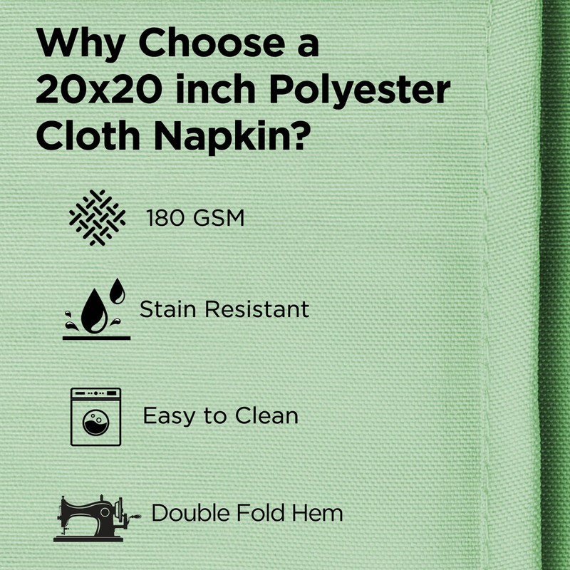 - PREMIUM 150-PACK SET: This set includes 150 brand-new 20"x20" square polyester cloth napkins in a stylish color. Ideal for table settings at weddings, restaurants, or events requiring durable, long-lasting linens.