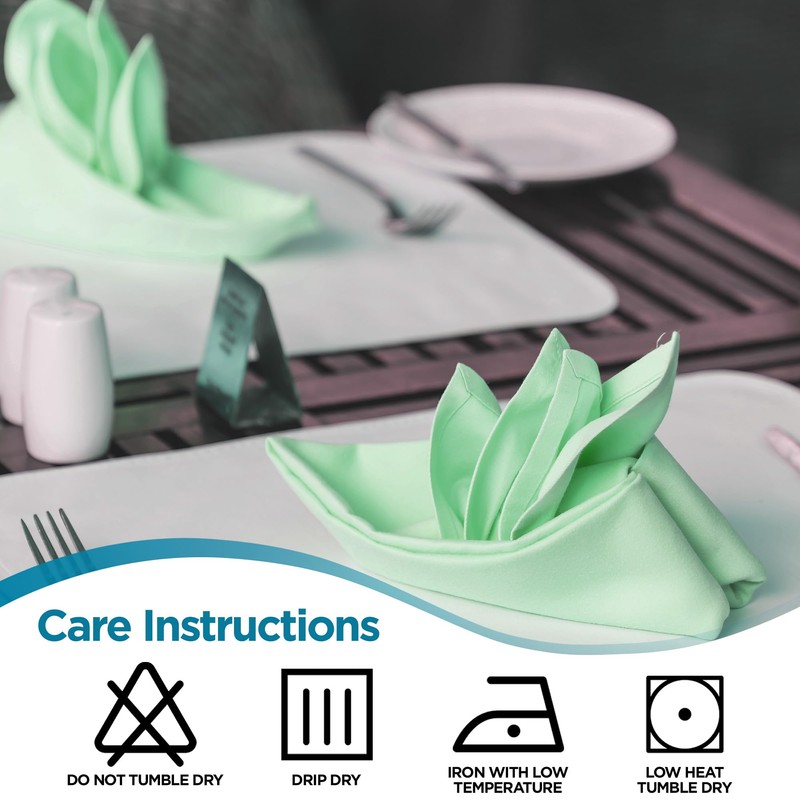 - WASHABLE & EASY TO MAINTAIN: These soft polyester napkins are machine washable, dryer-compatible, & designed to minimize stains and spills. Their wrinkle-free fabric provides low-maintenance, long-lasting decor for dining tables, events, & rentals.
