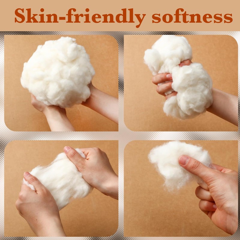 - 【High-Quality Material】 Made from soft, combed cotton, our stuffing delivers unmatched quality. The combed cotton adds an extra layer of softness and warmth, making it perfect for a variety of applications, including cushions, dolls, pillows, and more.