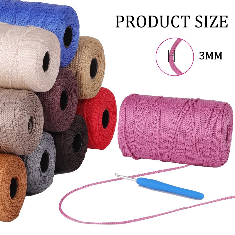 • Polyester Yarn for Crocheting: The 3mm thickness provides a sturdy and durable rope that is great for various macrame projects. Whether creating wall hangers, bags, bottom plates, or carpets, this cord holds up well and maintains its shape.