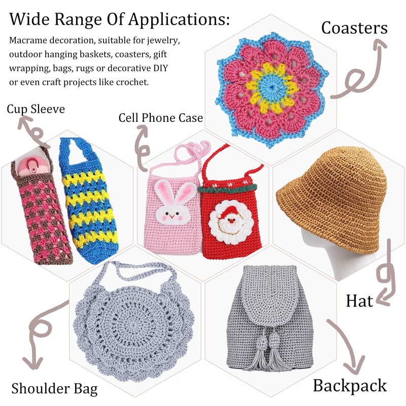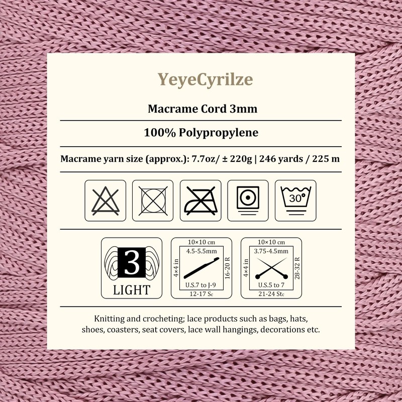 • Wide Range of Applications: This 3mm macrame cord would be good for any kind of knitting, crochet, or macrame project that calls for a non-stretchy yarn or cord, You can use for many purposes, such as seat covers, hat, rug, bag, keychain, jewelry, home decor, etc.
