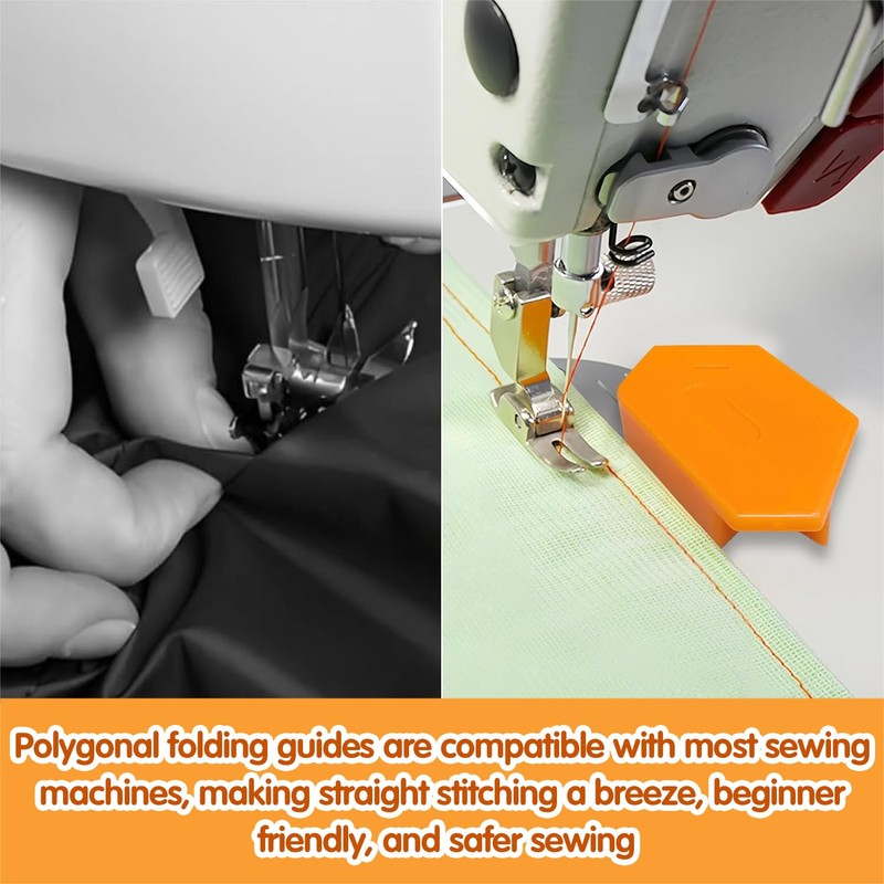 - Easy to use: simply place the polygonal hem guide on your sewing machine plate, and the fabric will glide effortlessly along the guide for even seam width. The built-in scale makes it easy to measure and align the fabric.
