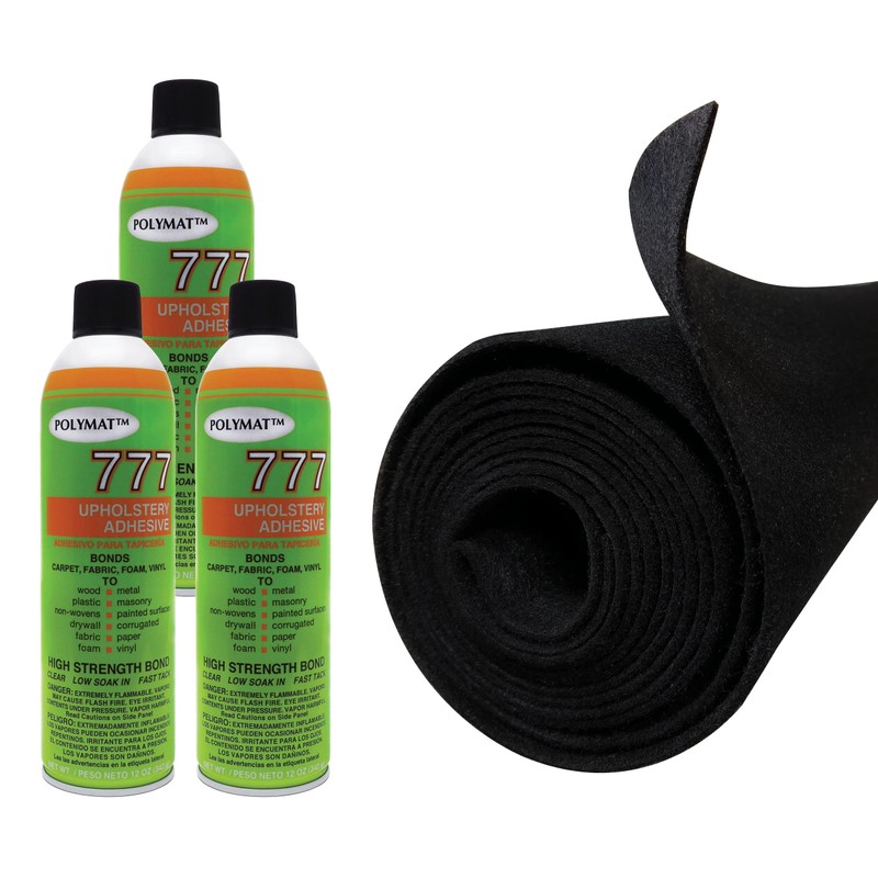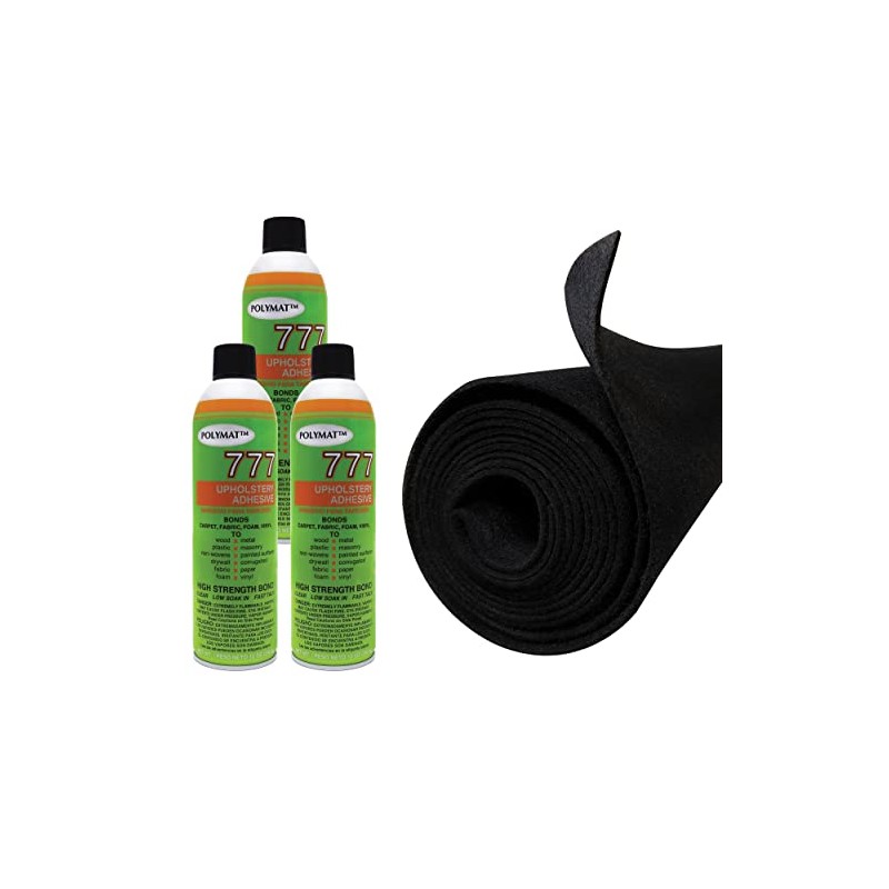 Polymat 10'x45 +3 777LV Spray Glue Black Felt Fabric Roll Multipurpose Carpet comp w/Carpeting Subwoofers DIY Projects Shelf Lining Toolbox Lockbox Closet mat Cat Dog Pet Food Area School Classroom