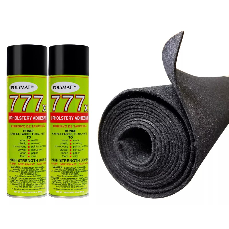 Polymat 12FT x 45" CHARCOAL Carpet ROLL + 2 CANS 777 Glue FOR Polymat S35 Latex backed