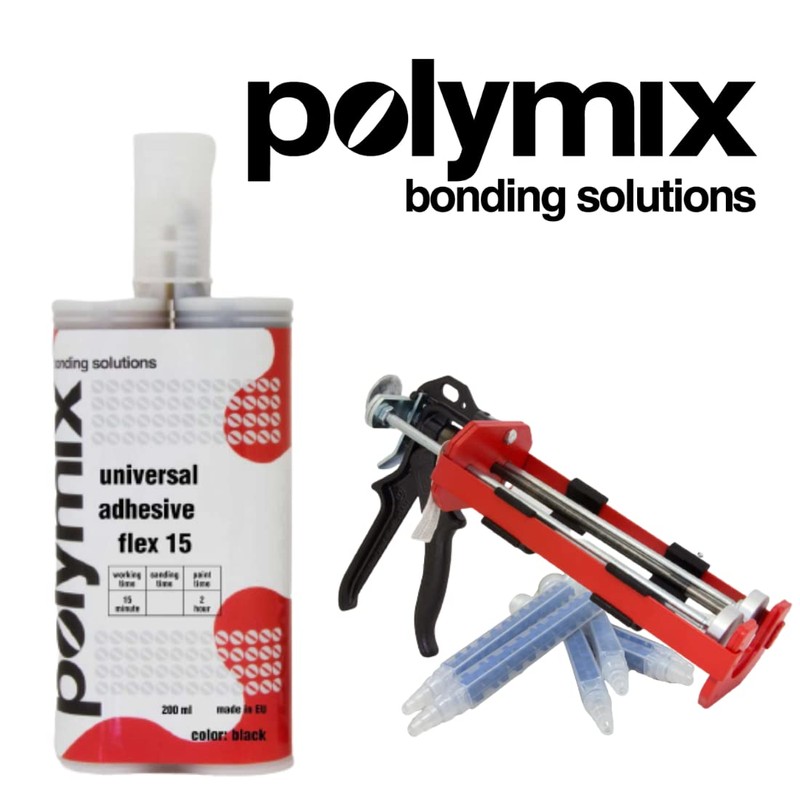 • Polymix Ultra Fast Adhesive is a two component, room temperature curing, natural colored, odorless, thixotropic polyurethane adhesive specially designed for structural bonding of a wide range of materials as thermosetting and thermoplastic materials, steel, aluminum, concrete, wood and glass.