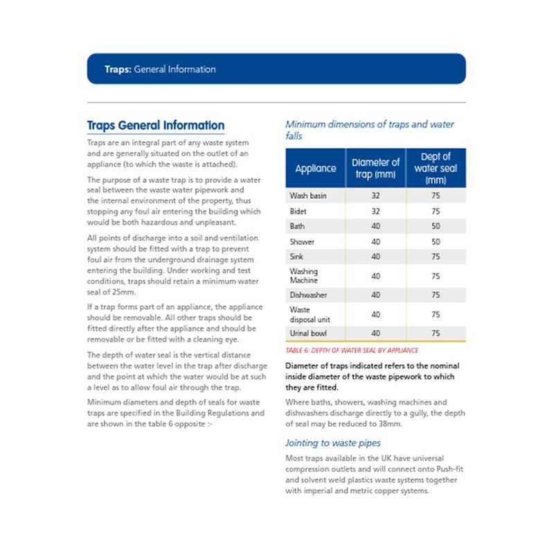 • Bottle Traps have a central vane, or dip tube to form the trap. There is a removable bowl to clear any blockages. This form of trap should only be used on wash basins.