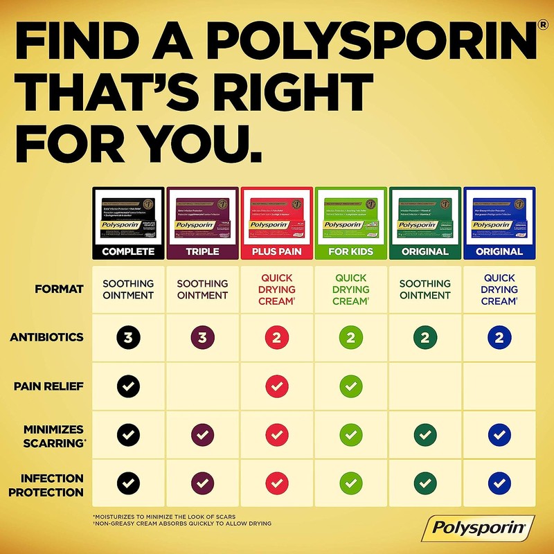*Use of POLYSPORIN® Ointment + sterile dressing helps minor wounds heal 4 days faster than with a sterile dressing alone (Leyden JL et al. 1987)