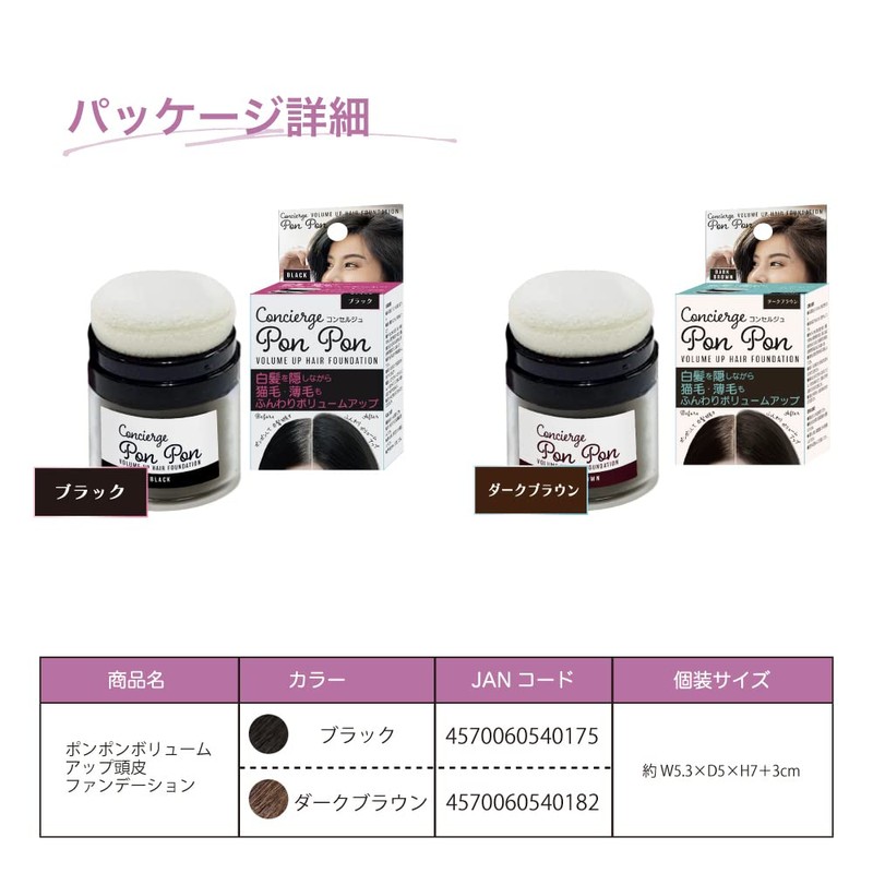 • Conceals thinner and gray hair, and add a pompon to areas that are concerned about increasing volume