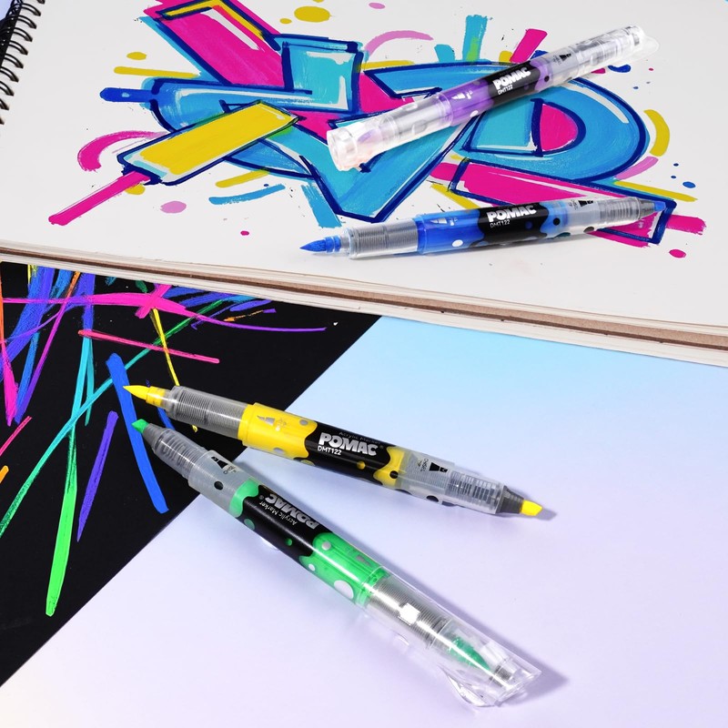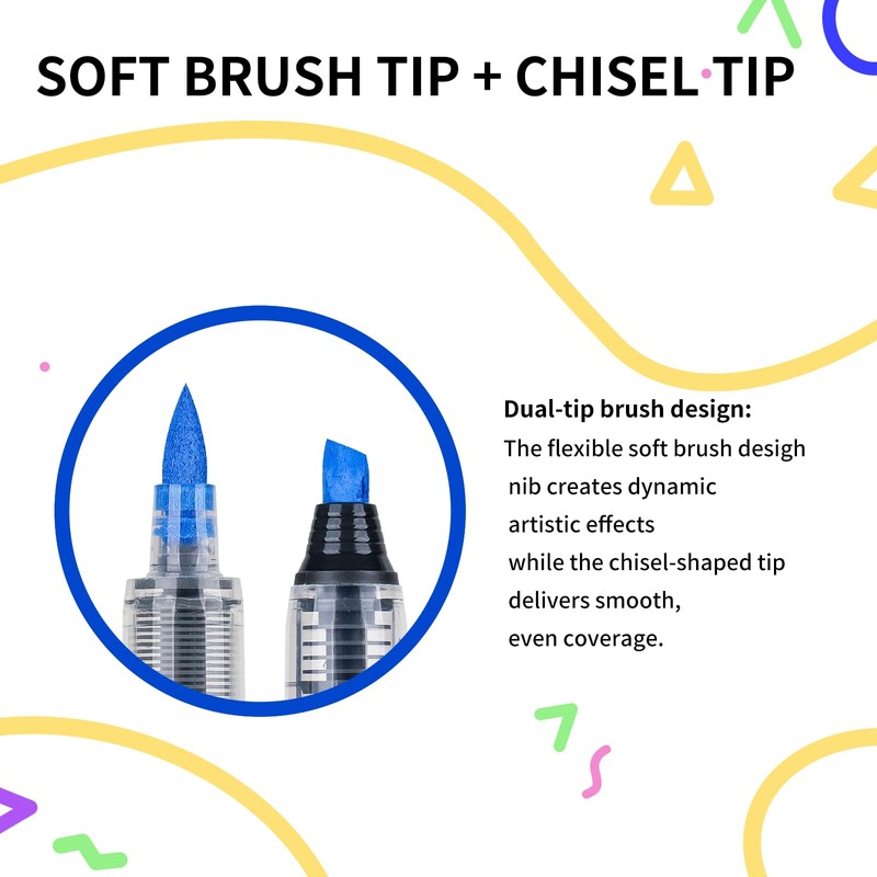 • Dual Tip Design: This marker features two versatile tips—one axe-shaped and one soft head—allowing you to create both bold, broad strokes and detailed, fine lines with ease.