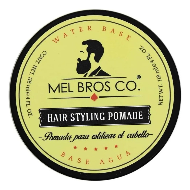 Pomada para Cabello Mel Bros Co. Fijación Media 118 ml. ¡Base agua, brillo natural y fácil de usar para un estilo flexible e impecable!