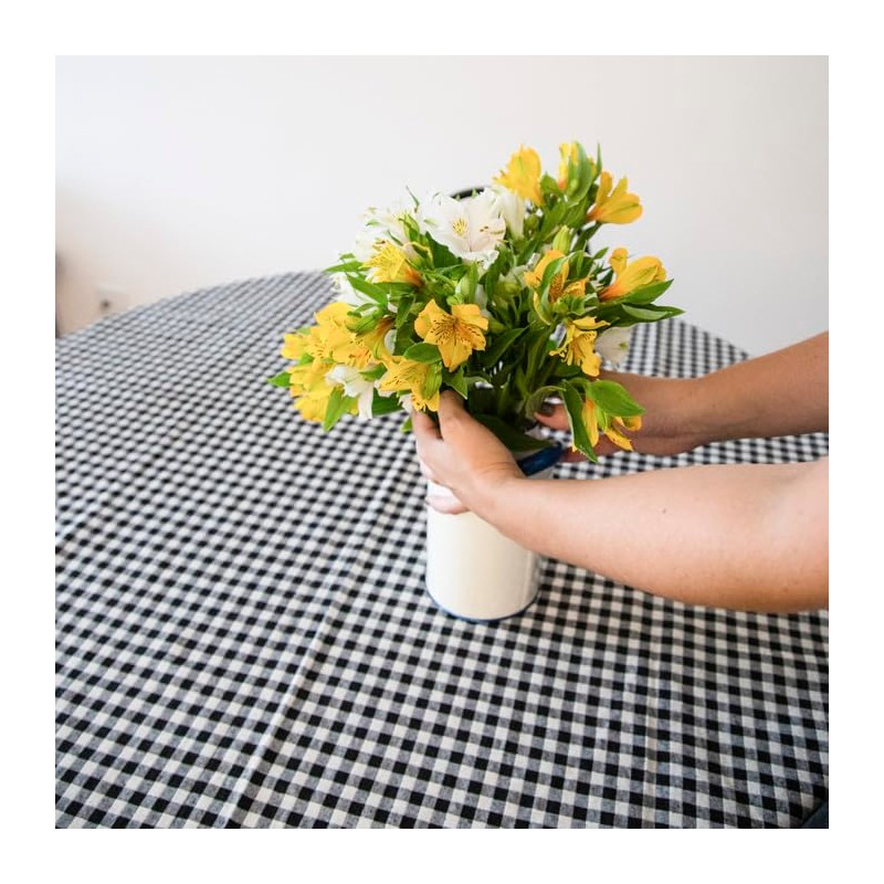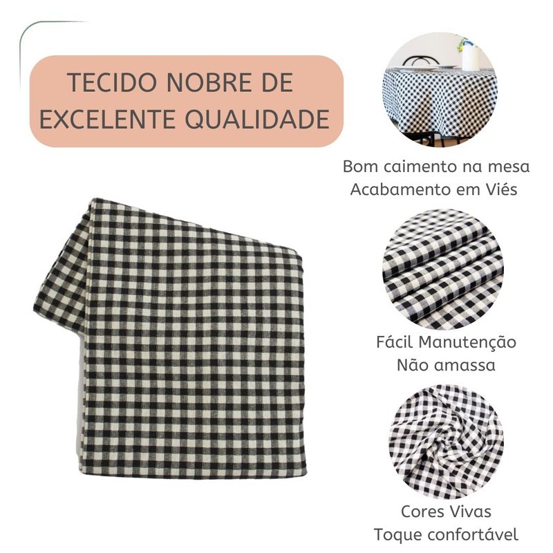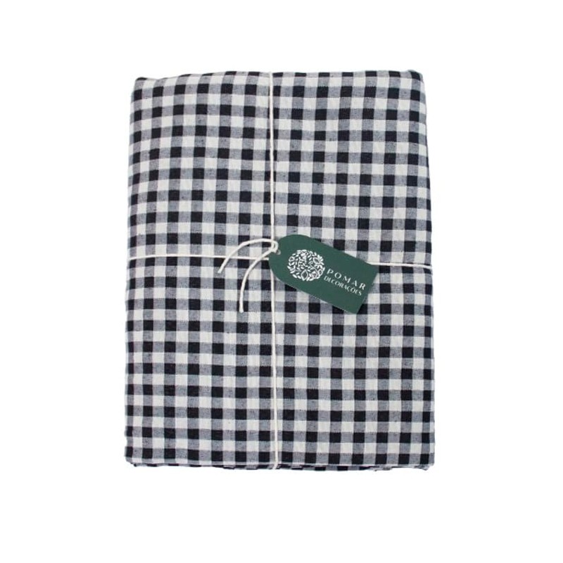 Pomar Decorações Tablecloth Premium Checkered Style. Thick and Sturdy Heavy Weight Cotton Linen Fabric. Wrinkle Free. Rectangle and Round Sizes (Black - 82" Diameter - Round 8 Seats Table)