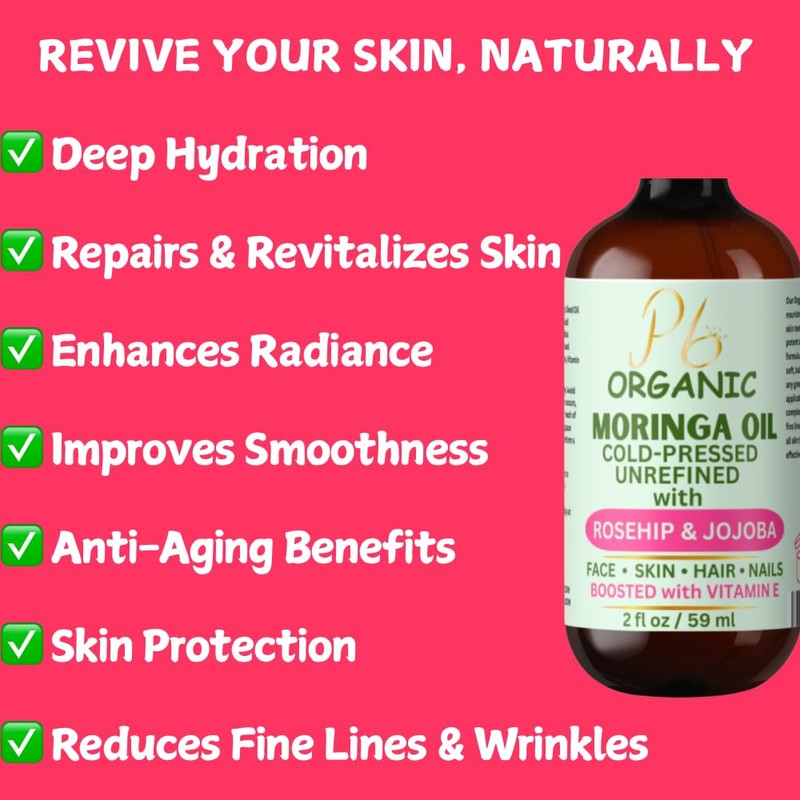 - Organic Cold-Pressed Moringa Oil C Extracted from Moringa oleifera, this lightweight oil helps maintain soft, nourished skin.