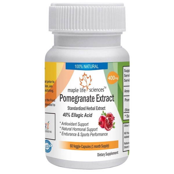Pomegranate Extract (40% Ellagic Acid) - 400mg - 60 Vegan Capsules - Hormone Support