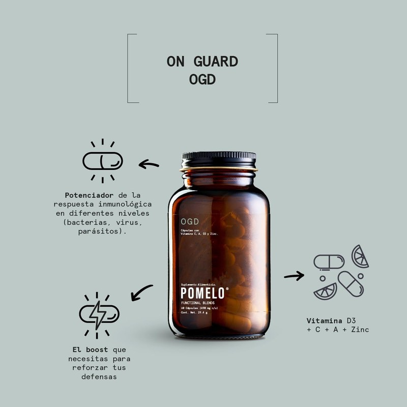 POMELO OGD On Guard | Suplemento Multivitamínico para Fortalecer Sistema Inmune | Reforzar Defensas | Vitamina C, D3, A y Zinc| 60 Cápsulas - 60 Porciones
