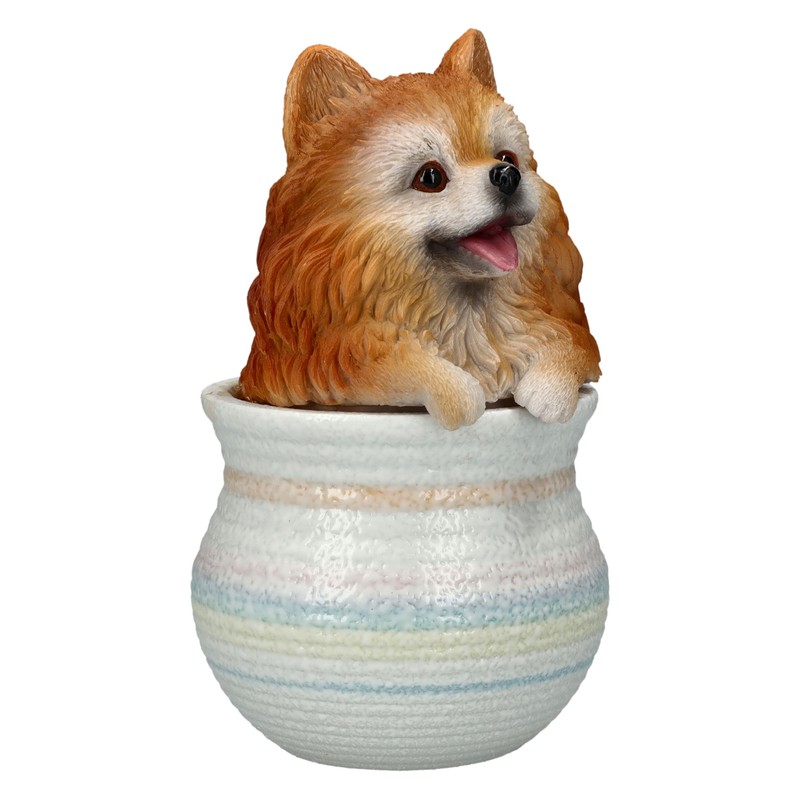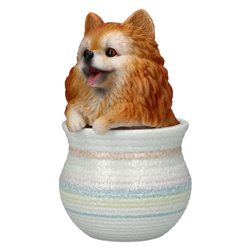 Pomeranian figure in flower pot - a charming decorative figure for dog lovers.