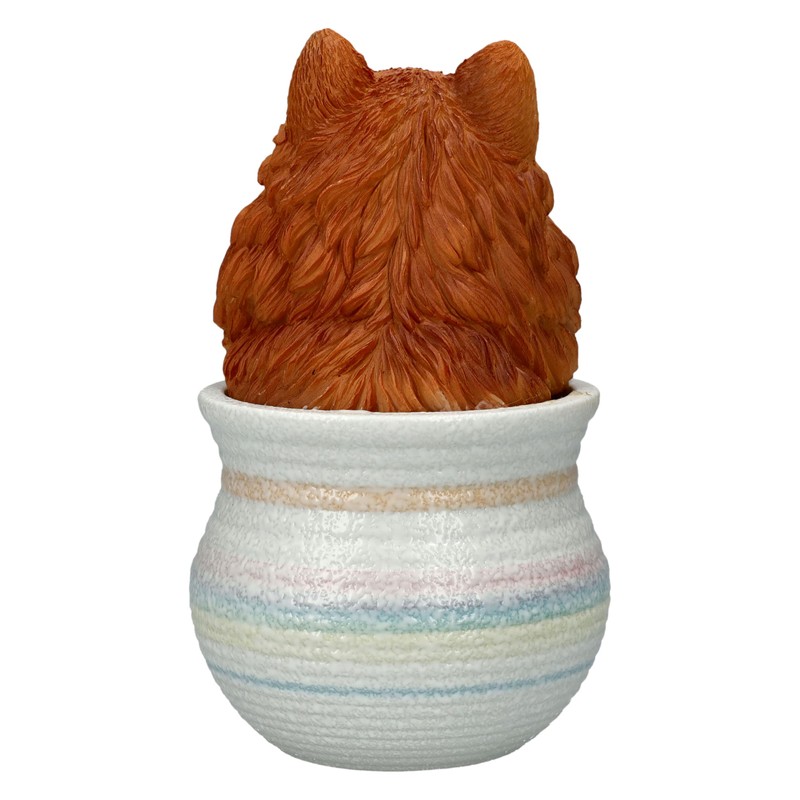 Pomeranian Dog Figurine in Flower Pot - Polyresin Dog Figurine, 16 cm Height, Hand Painted
