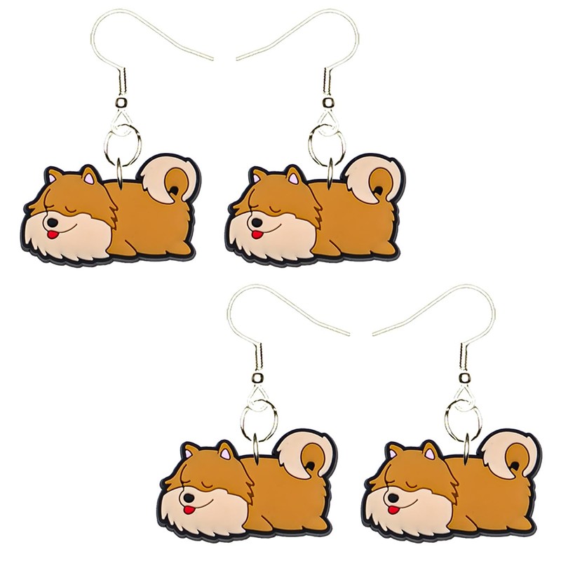 Pomeranian Puppy Dog Earrings Hypoallergenic Silver Plated Fishhooks Yazzle Dazzle Original Artwork Cute Sleeping Nap 2 Sets