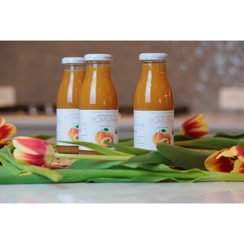 Pomona Organic Apricot Juice, Cold Pressed USDA Organic Juices, 100% Apricots, No Added Sugar, Not From Concentrate, Vegan, Kosher, Non GMO, Pasteurized, 8.4 oz Glass Bottles (Pack of 12)(Packaging May Vary)