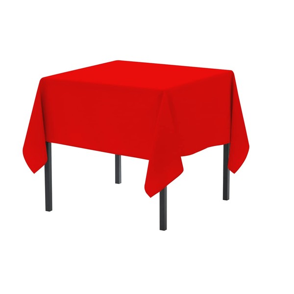 Pomp Red 52" x 52" Inch Square Premium Polyester Tablecloth | Wrinkle + Stain Resistant Easy Care Fabric | Fits Square or Round Table