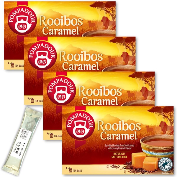 Pompadour Rooibos Tea Caramel (20 TB Pack) x 4 Boxes + Matcha Latte Stick wit...