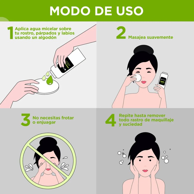 Mientras que el té verde, conocido por sus beneficios antioxidantes, protege a la piel contra los agentes contaminantes. Ambos ingredientes crean la combinación perfecta para darle un Detox a tu rostro. Agua Micelar con agua purificada triplemente, carbón activado y extracto de té verde de origen natural.