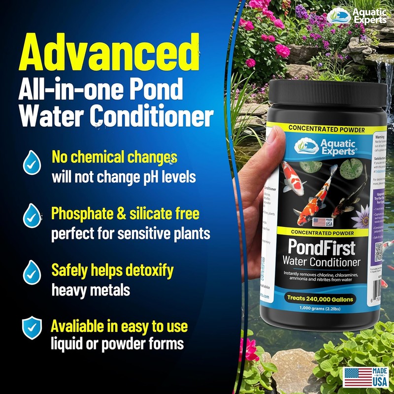 PondFirst Pond Water Conditioner - Concentrated Instant Dechlorinator for Fish Ponds, Makes Water Safe for Koi and Goldfish, Made in The USA, Aquatic Experts (Powder - 1 Kilogram)