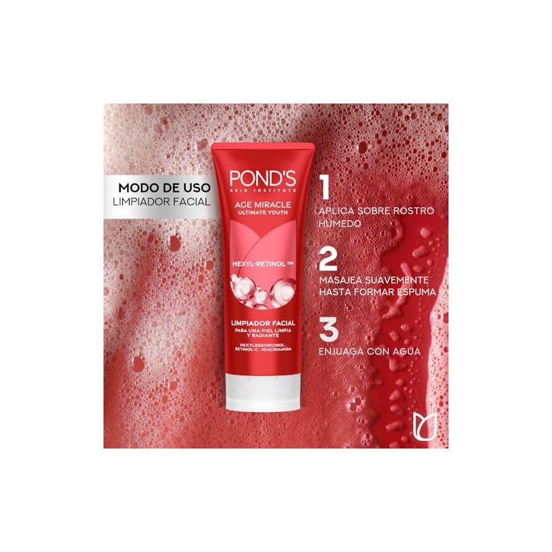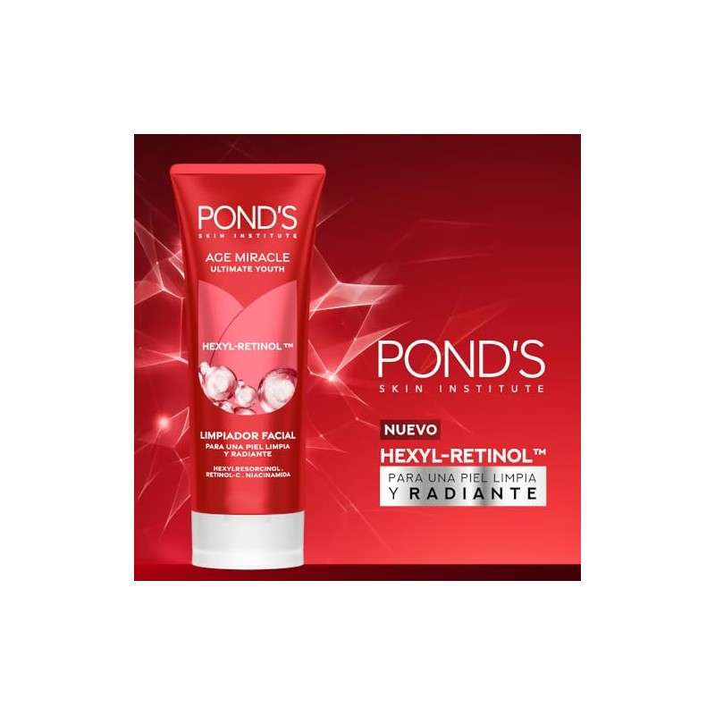 PONDS Limpiador Facial Age Miracle Ultimate Youth con Hexyl-Retinol para una piel más joven, limpia y radiante 100 g