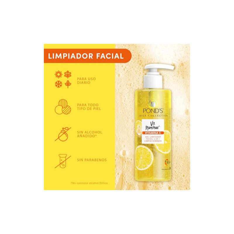 PONDS Limpiador Facial Vs. Manchas Vitamina C, ideal para el cuidado de la piel, dejndola limpia, hidratada, luminosa y libre de impurezas 200 ml