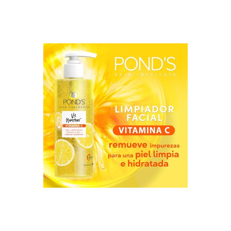 PONDS Limpiador Facial Vs. Manchas Vitamina C, ideal para el cuidado de la piel, dejndola limpia, hidratada, luminosa y libre de impurezas 200 ml