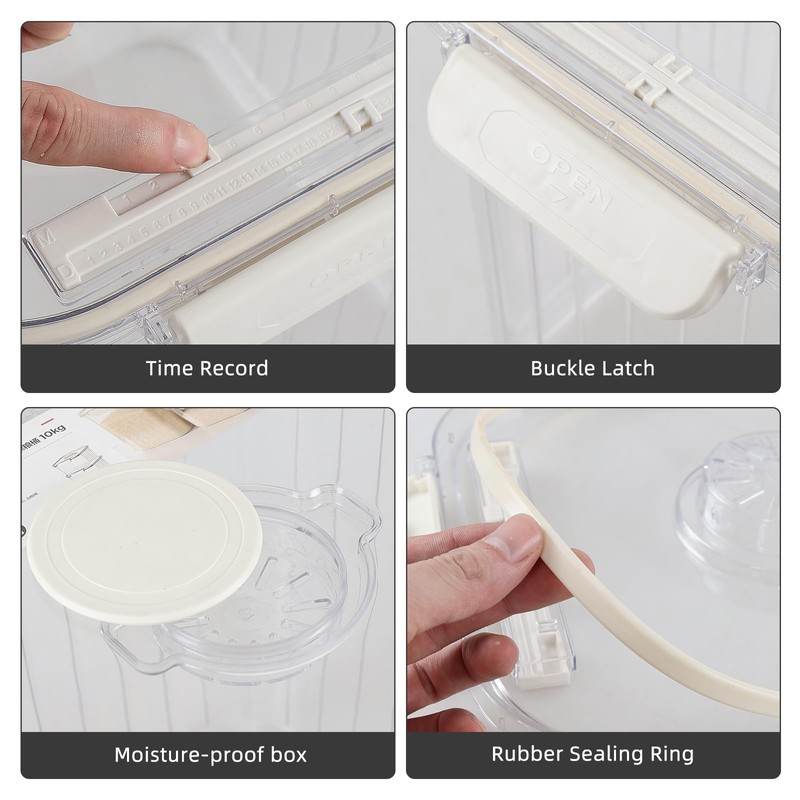 - The lid has rubber rings and locks, which provide good sealing effect and can maintain internal hygiene; The groove on the lid can hold desiccant to keep the inside dry