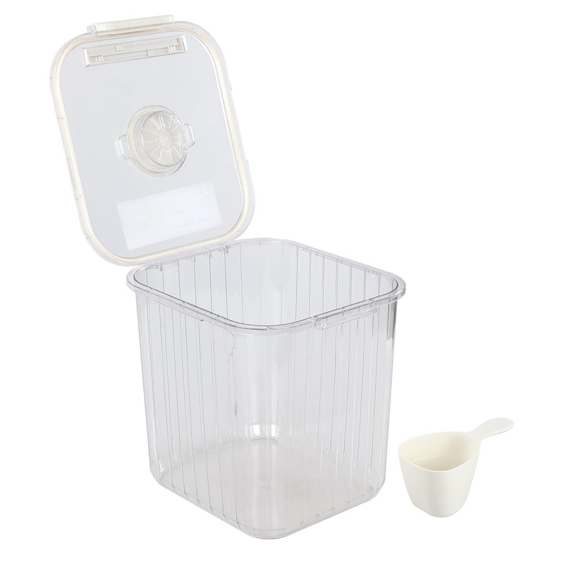 - Equipped with a measuring cup, it can accurately control the dosage and is suitable for storing rice, beans, flour, dog food, and nuts