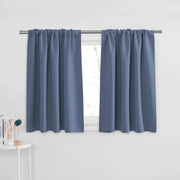 PONY DANCE Blue Haze Short Window Curtains for Kitchen 24 inch Long, 2 Panels Set Half Window Drapes for Bedroom Basement, Blackout Small Curtains for Travel Trailers, Width 29 x Length 24 inches