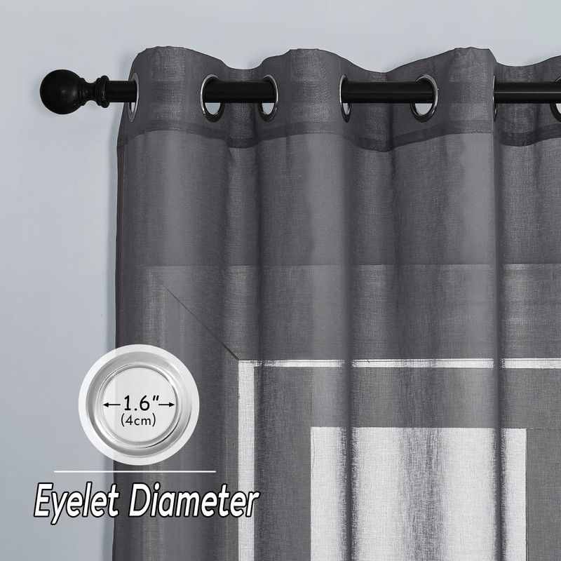 PONY DANCE Curtains for Living Room, Grey Transparent Curtains, Set of 2, H 245 x W 140 cm, Linen-Look Dark Grey Curtains, Eyelet Curtain, Translucent