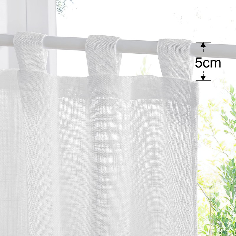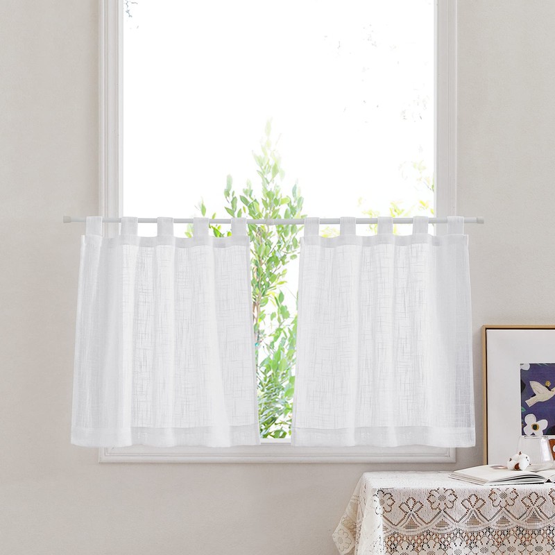 PONY DANCE Net Curtains Kitchen Window Curtains Short Curtains White Semi-Transparent Bistro Curtain Set of 2 Linen Texture Curtains for Motorhome Tab-Top Curtain Set of 2 W 60 x H 60 cm