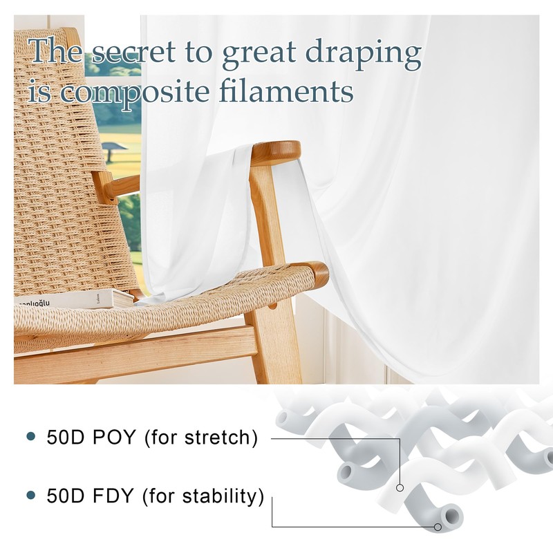 - Premium Fabric: The curtain's exceptional drape comes from its innovative 50/50 composite filament construction, combining malleable and stable filaments for a silk-like hang.