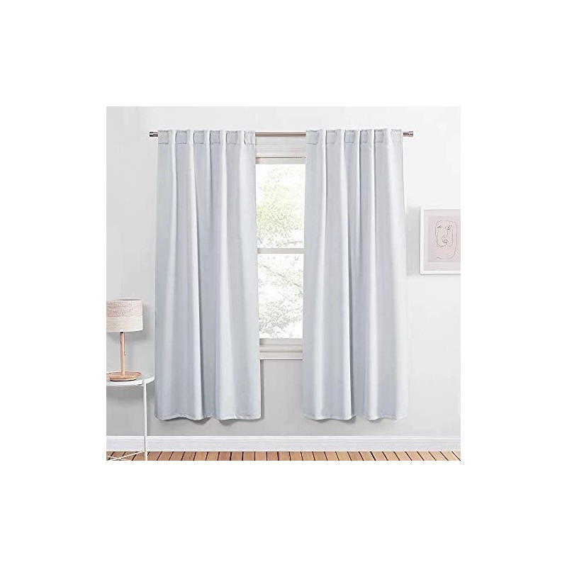 - READY MADE: 2 pieces of heavy-duty blackout curtains includes, each measures 42" wide x 63" Long(Total width is 84"). 6 back tabs per panel, 3" rod pocket top fits most standard rods and makes the maximum coverage of windows