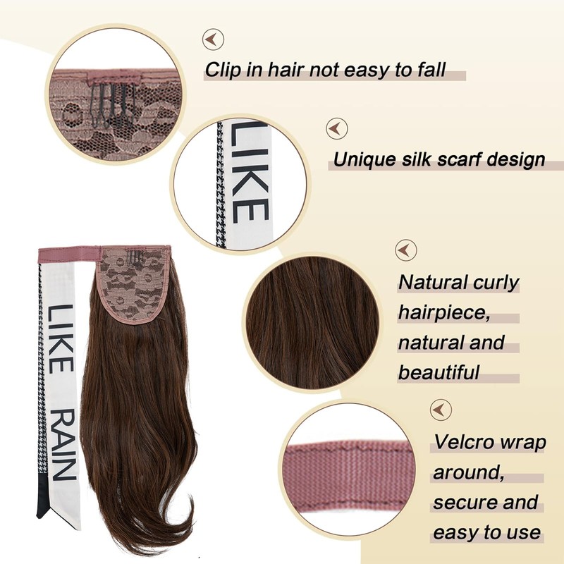 - Easy to use: wrap around ponytail extension is more comfortable and easier to wear, it only takes a few seconds to finish with a gentle paste. The clip and magic band ensure a secure and comfortable attachment for all day wear.