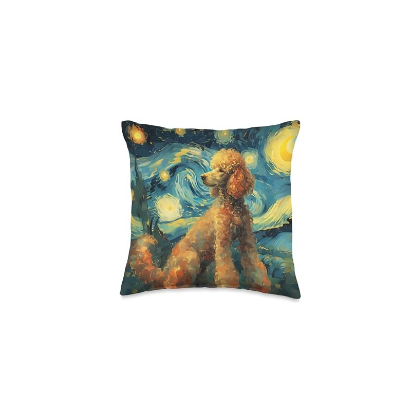 Poodle Dog Starry Night Vincent Van Gogh Painting Throw Pillow