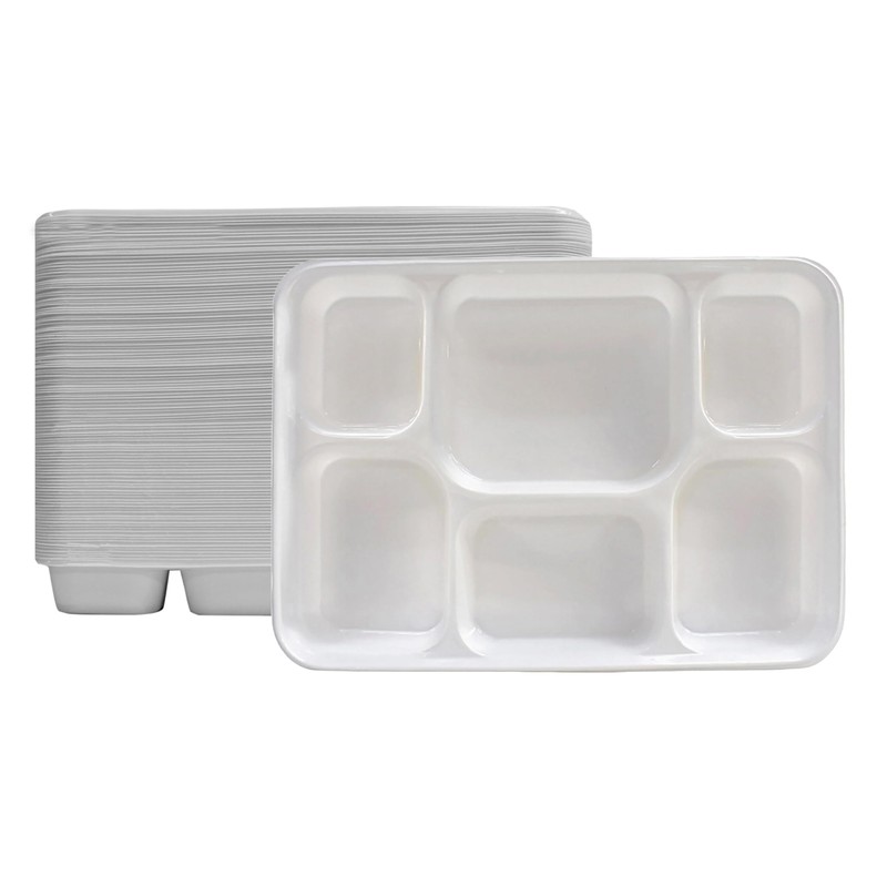 Pooja Bazar 6 Compartment White Disposable Party Thali Plates (200 Pack)
