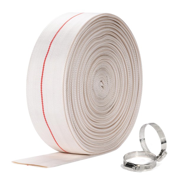 Pool Backwash Hose 4"x65.6 ft Heavy Duty PVC Discharge Hose for Swimming Pool with 2 Clamps General Purpose Lay-Flat Pump Drain Pipe for Garden Irrigation,White