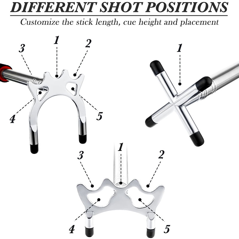 - Provides 5 shot positions: the bridge head of the billiard cue holder can offer 5 shooting positions, allowing you to adjust the stick length, cue height and placement by yourself, and then play a nice shot