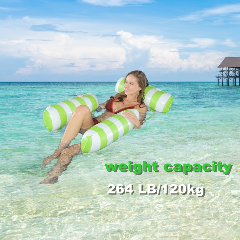 - 🌊4 IN 1, EXTREME RELAXATION IN WATER. This floaties for adults can be used as a water hammock, lounging chair, drifter or saddle, ideal for leisure water activities.You can comfortably and safely suspend in the water, relaxation at the beach, pool, or lake